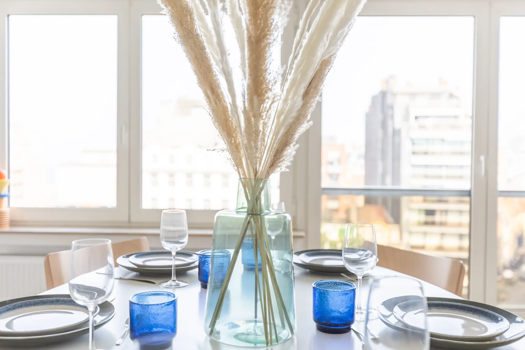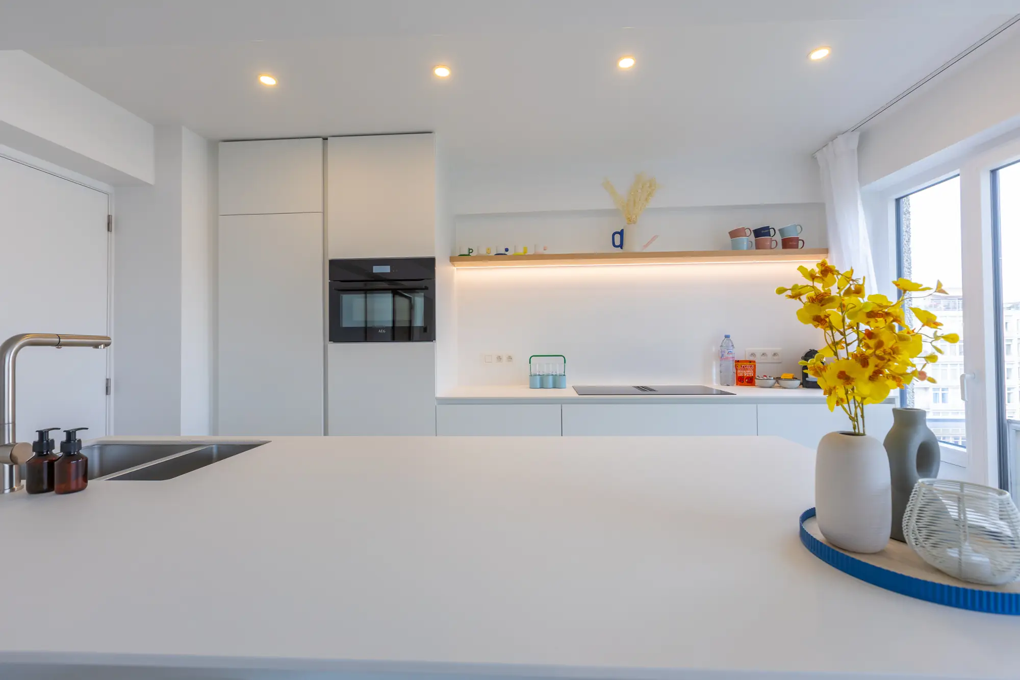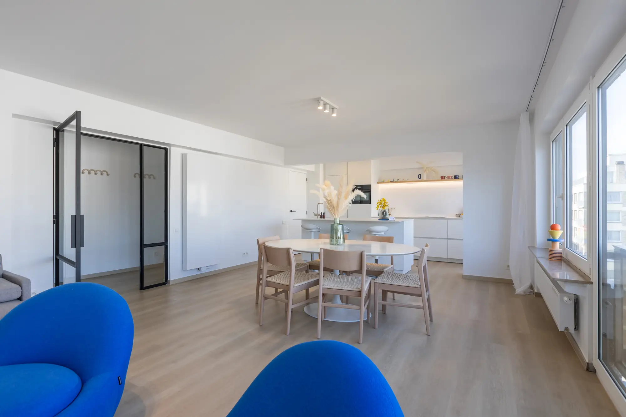 Stap binnen in een wereld van licht en ruimte waar stadsdynamiek en kustrust elkaar perfect aanvullen. In Maison Anna, gelegen in het bruisende centrum van Oostende met zicht op het levendige Marie-Josée plein, voel je je direct thuis in een omgeving waar stijl en comfort moeiteloos samengaan.