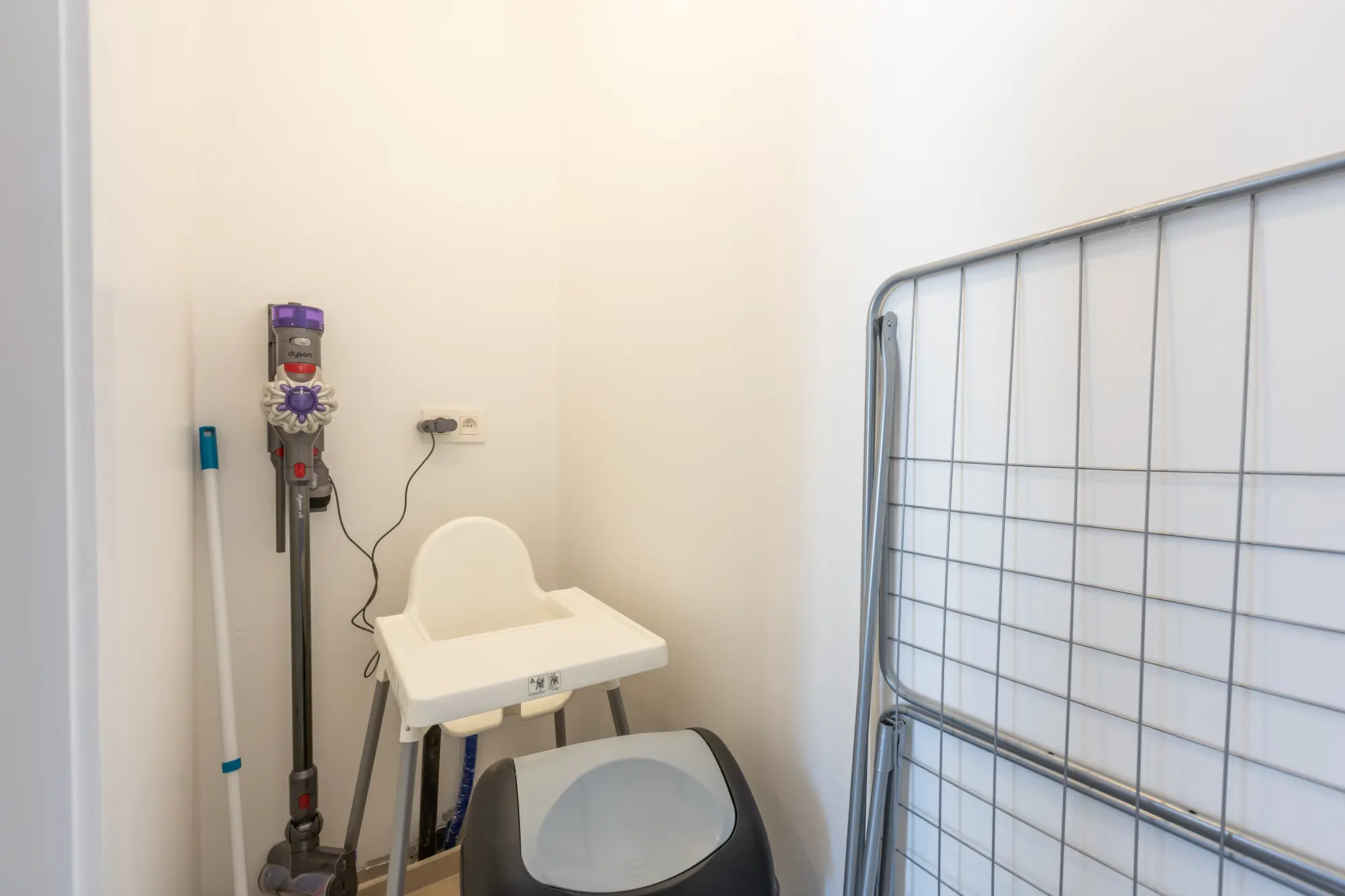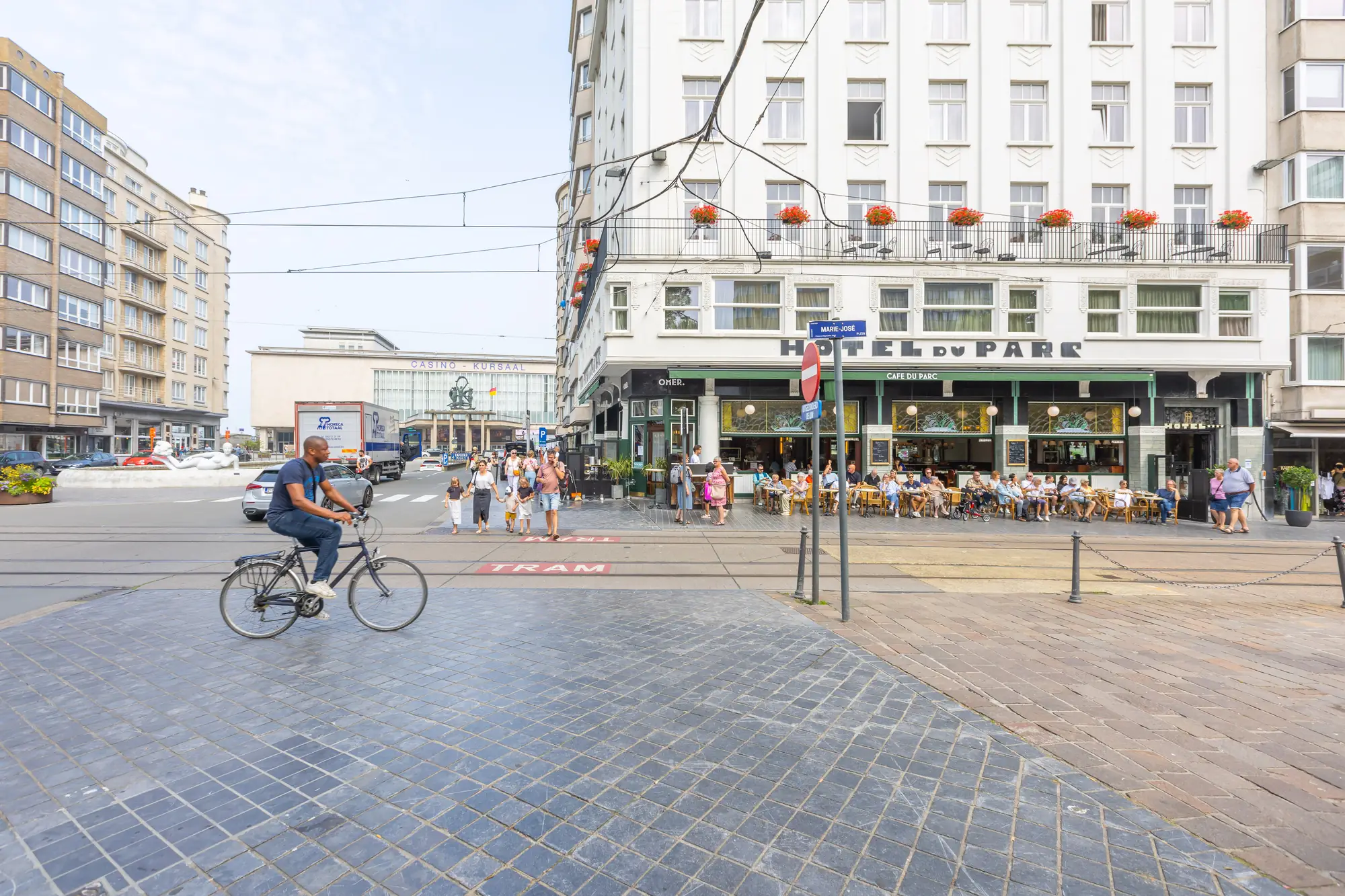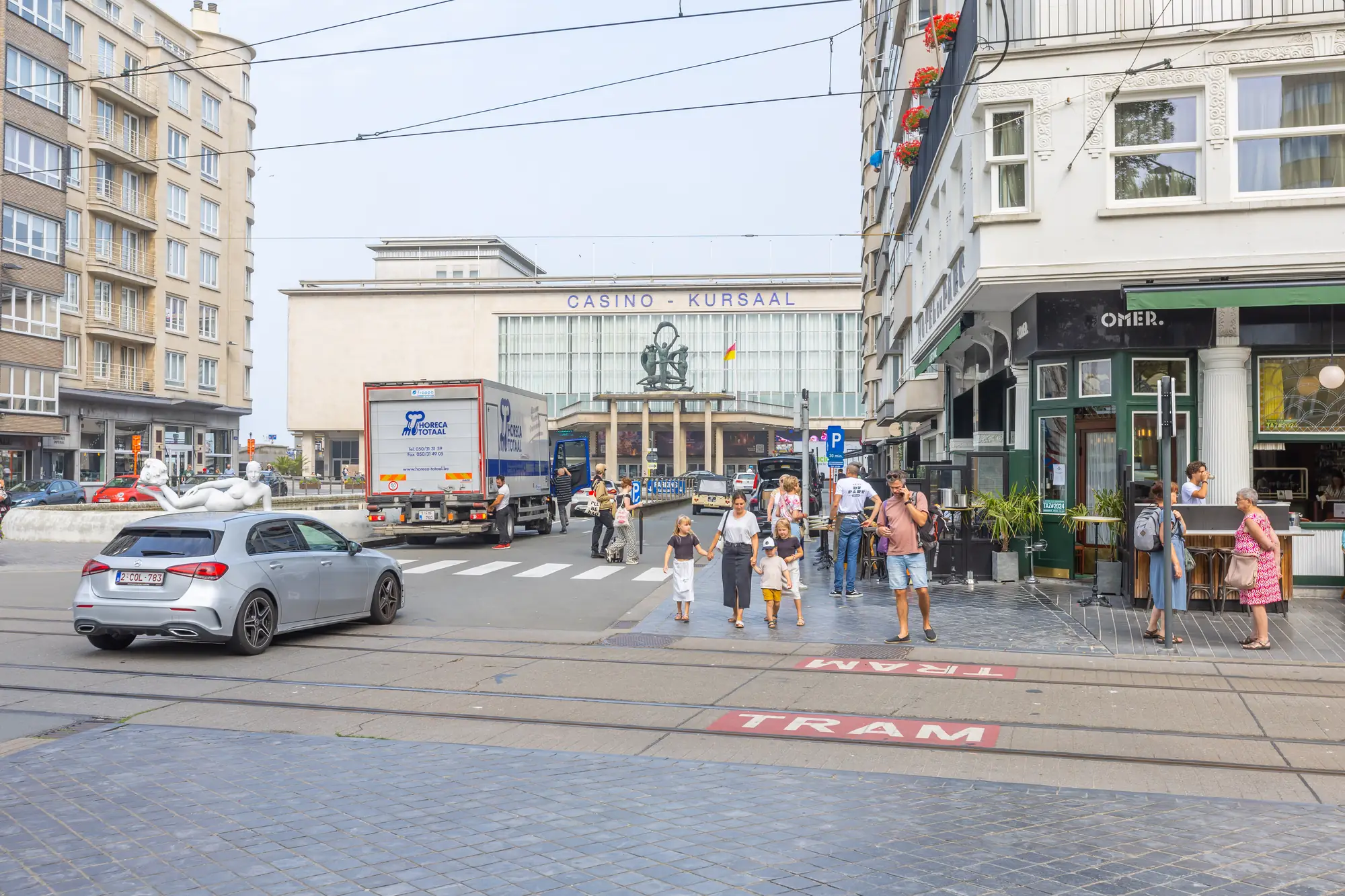 Je hebt een moderne lift die tot de 8ste gaat, dus geen trappen. Eenmaal boven heb je een spectaculair uitzicht over Oostende, meer licht dan lagere verdiepingen, en complete rust (geen straatlawaai). Gezinnen met kinderen waarderen dit: de kinderen kunnen ’s ochtends vroeg op zonder de buren te storen. Wat gasten zeggen: “Het voelt alsof je boven de stad uitstijgt, maar je bent er binnen een minuut.” De hoogte is een kwaliteit, geen nadeel.