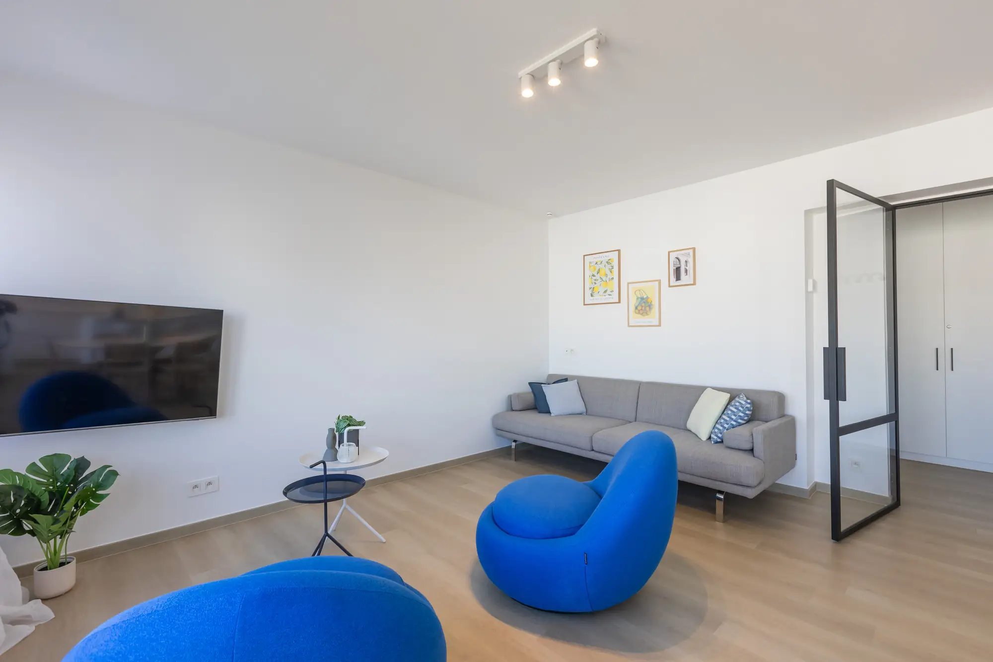 We hebben een trendy toevluchtsoord gecreëerd waar zonlicht binnenstroomt door grote ramen, waar twee comfortabele slaapkamers en twee badkamers rust bieden na een dag vol ontdekkingen, en waar de ruime woonkamer uitnodigt tot ontspannen samenzijn met een glimp van de zee aan de horizon. Dit is niet zomaar een vakantieverblijf, maar een plek waar je stadsleven ervaart met het geruis van de zee op de achtergrond, perfect gepositioneerd voor wie het beste van beide werelden zoekt.